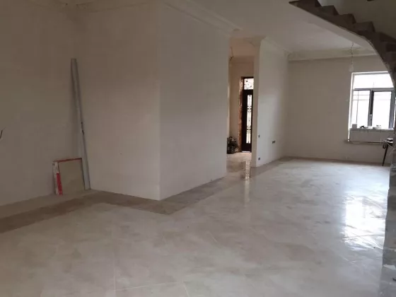 В доме высокие потолки (3.5м), двери из дубового массива, лестницы бетонная подготовленная к обшивке, автономное