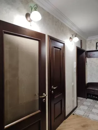 Квартира переделанная в 2-х комнатную, односторонняя, комнаты раздельные, высота потолков 3 м, санузел смежный, ремонт евро (хозяин ремонт делал для себя из дорогих материалов), в квартире звукоизоляция по всему периметру, имеется вместительный подвал с выходом из кухни.