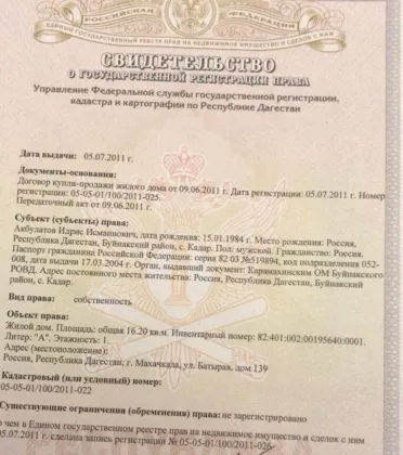 | Населенный пункт | Махачкала |