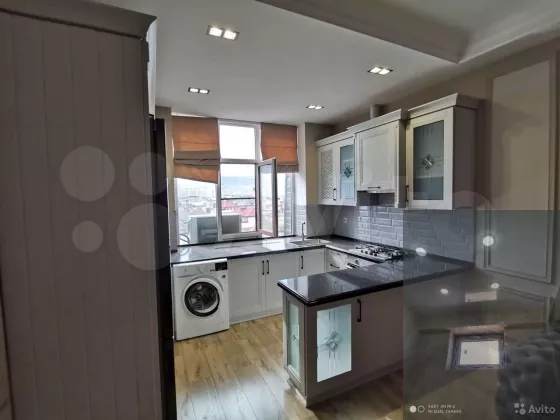 Продаётся квартира в новом доме с дизайнерским ремонтом.... С мебелью и техникой, мебель из массива дерева, и дорогая техника... В шаговой доступности магазины аптеки и.т.д, за домом находится частный садик, с окна виден красивый вид на Духовный центр Пророка Исы ... До моря 500 метров, торг приветствуется, по всем интересующимся вопросам звоните...